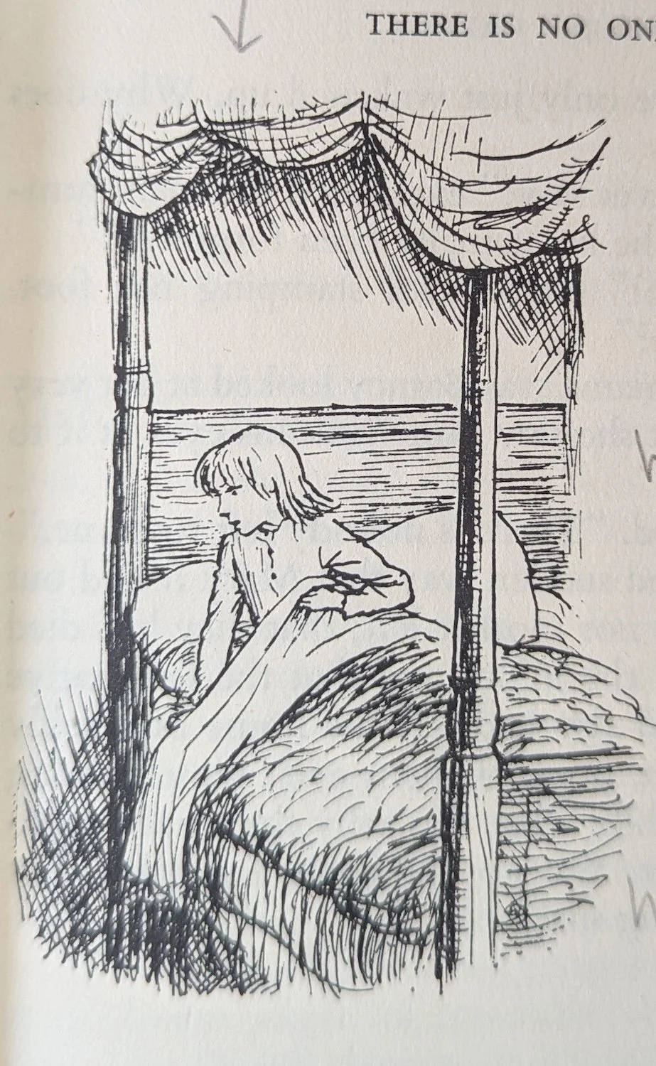 …and of Mary in her four-poster bed - not at all afraid! (She knows it’s a harmless snake.)